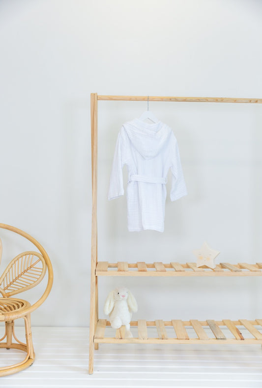 Pina Beyaz %100 Organik Pamuk Müslin Kapüşonlu Çocuk Bornozu