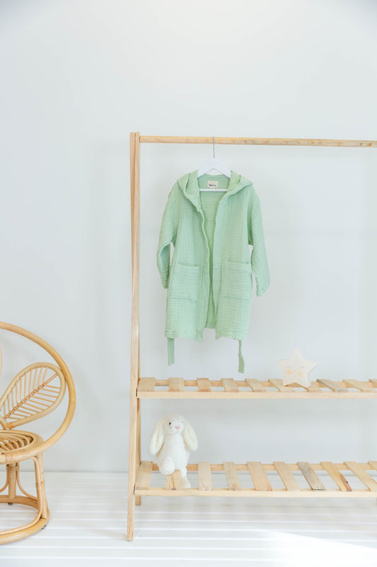 Pina Mint %100 Organik Pamuk Müslin Kapüşonlu Çocuk Bornozu