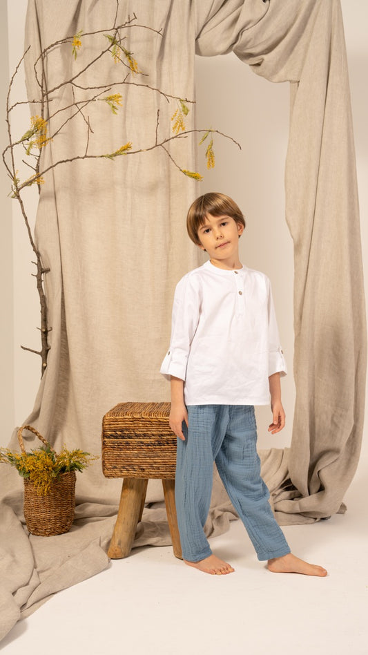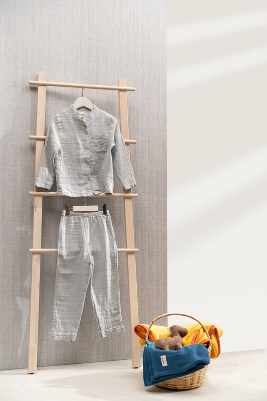 Nest Gri %100 Organik Pamuk Müslin Çocuk Pijama Takımı